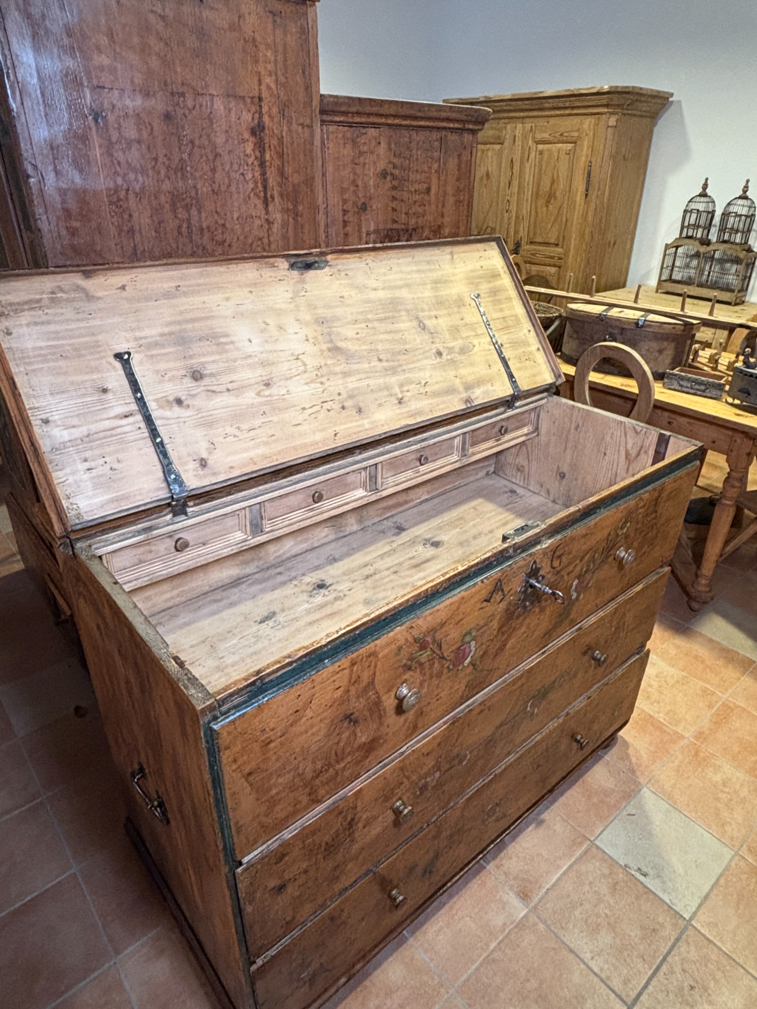 Alte, originale Truhenkommode mit Geheimfach